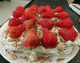 - 4. 烤好的蛋糕小心的取出,把外边的边角去掉。淡奶油打发涂抹均匀。铺上好吃的水果摆盘。可以放巧克力。中间也可以夹奶油