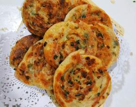- 3. 葱要比蒜泥多放点!把醒好面皮擀薄,撒上所有东西,卷起来在切出来,按平。