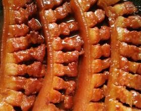 - 2. 把五花肉洗洁净,切成两手指宽那么大,再改刀成大小和麻将差不多即大概,不要割断