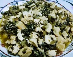 - 4. 油温上来后,把雪里红下入锅中翻炒一会儿,然后下入豆腐,继续翻炒,翻炒的过程中不要担心豆腐会碎,你也可以故意把豆腐炒的碎一点,这样容易进味道,豆腐才好吃
