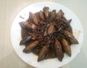 锅中加入籽乌和半碗腌制用的酱料(老婆说这个量的咸淡刚好),加入耗油、少许盐、麻椒爆炒,后加入少许水直至收汁。可以吃了