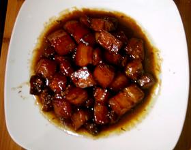 放入锅中煸炒五花肉出油,加入白糖,炒变色,加入生抽酱油,调料,葱姜蒜,盐,鸡精,味精,耗油,料酒,醋,加开水小火炖制50分种。