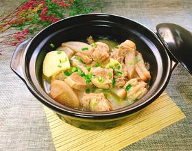 倒入砂锅,加姜片,葱段,料酒