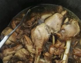 去炖锅一个,倒入炒好的麻油鸡,隔水炖,根据个人喜好,嫩点炖30分钟,老点继续炖