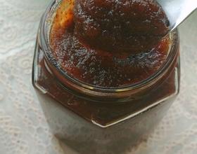 大概一个小时的时候,姜枣膏已经很稠糊了,提起铲子不会掉落,膏体比果酱稠一点点就可以了