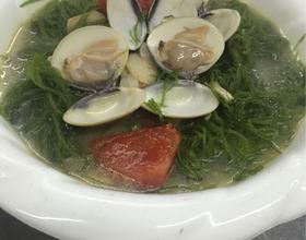 下上汤,海草,沙白,番茄,草菇片,炸蒜片一起煮熟调和谐味下尾油起碟即可