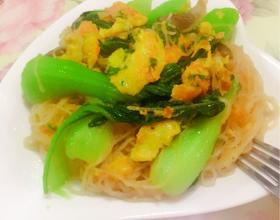 加入适量盐酱油料酒胡椒粉糖炒至米粉上色即可