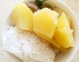 牛肉煮二十分钟加入土豆炖煮, 出锅前加入香菜。。。成了,加入米饭盖上