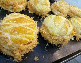 手抓菠萝包的时候,手不要按着皮,不然皮就给你按扁了,其他的按着步骤来,都没问题。