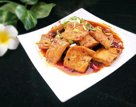 - 6. 炒锅加油烧热,放入豆腐块煎炸