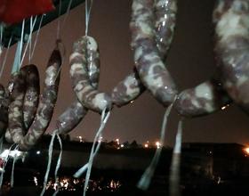 - 7. 灌好后再用长绳子对折扎成一小段一小段,有利于风干得快,然后用温水轻轻的洗两遍。