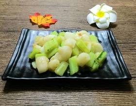 倒入黄瓜段和马蹄丁翻炒两分钟