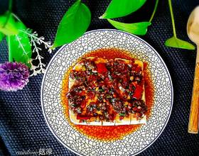 将炒好的酱料,浇在蒸好的豆腐上即可