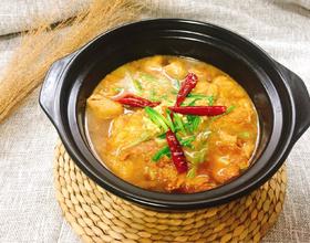 把炒好的肥肠,煎好的臭豆腐都放进砂锅
