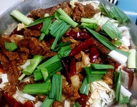 吃时把包菜,蘑菇,放入铁锅底部,再加入牛肉到放点大蒜就可以吃了。