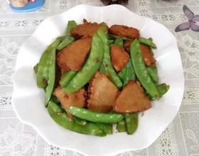 放入荷兰豆,下盐,放点卤汁,翻炒圴匀出锅