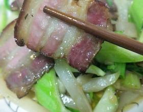 - 10. 油热到肉腊肉,翻炒出油。