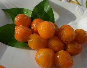 熬制过程中不停搅拌,如先有凹形的金桔移到锅边。另外蜜汁可以冲水喝。