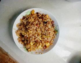 然后先炒鸡蛋再加入和米饭一起翻炒