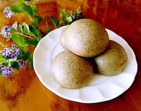 酵母用温水化开,放入适量的芝麻粉搅匀。