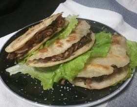锯齿到从中间分二半,将肉馅夹进去,也可以将生菜一起夹进去。