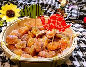 倒入糖霜,上下抖动,使之均匀裹上糖霜