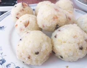 - 10. 手上沾些凉水然后把饭团捏成圆球,放入蒸格里蒸十分钟就可以吃了