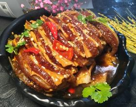 - 8. 搅拌均匀的料倒入碗中,高压锅起压5分钟,普通锅大火20分钟,蒸好出锅,到出汤汁,把肉扣过来,汤汁入锅沸腾后放入蒜末勾芡出锅。