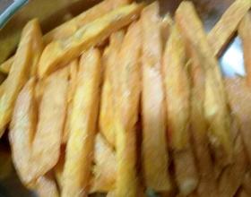 锅里多倒一点油容易炸,油热放入红薯条,炸至两面金黄就可以了