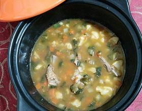 - 5. 将排骨汤加入西红柿中煮开后关火待用
