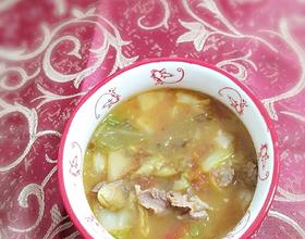 - 20. 把炒好的菜倒入西红柿大骨头中