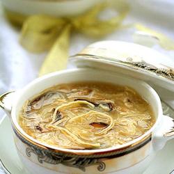 用料:鸡胸肉、粉丝、干香菇、鸡蛋、老抽、芝麻香油、马蹄粉、清高汤