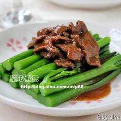 用料:牛肉、芥兰、鸡清、盐、鸡精、生粉、蒜末、生抽