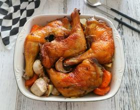 - 13. 大概烤60分钟后取出给鸡腿和蔬菜表面刷一层油继续烤30分钟